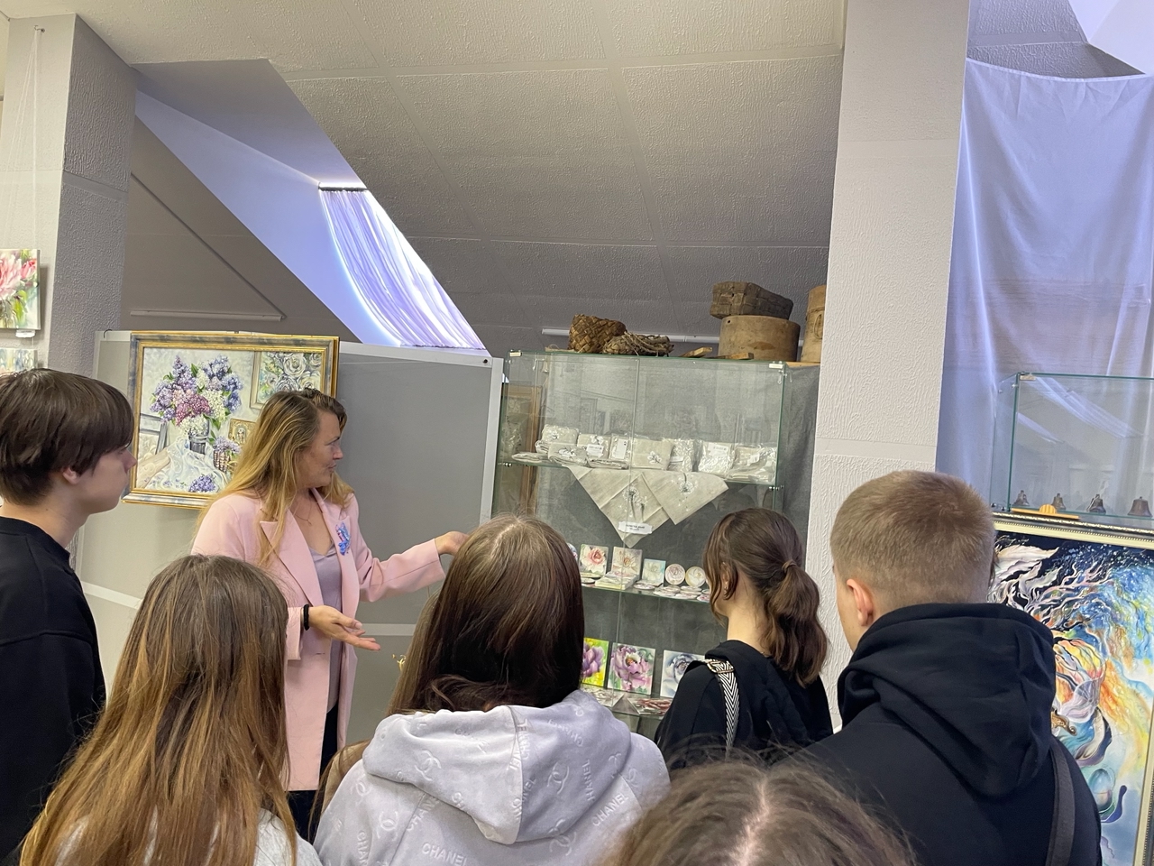 30 сентября 2025 ребята Родниковского политехнического колледжа текстильных групп по Пушкинской карте посетили Родниковский туристический центр и познакомились с выставкой двух известных мастеров.