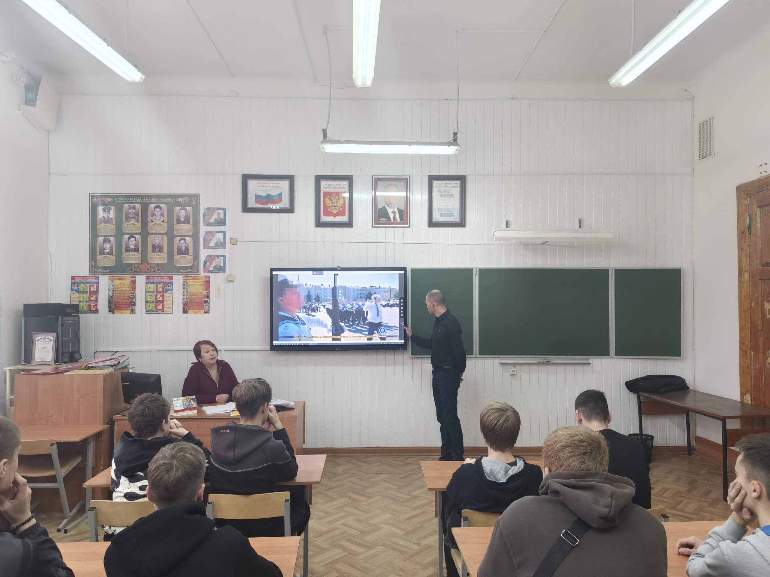 14 октября 2025 года в рамках профориентационной работы и разъяснений о воинском долге и службе в рядах вооружённых сил, в получении высшего военного образования в Родниковском политехе состоялась встреча с представителем пограничного управления г.Архангельска.