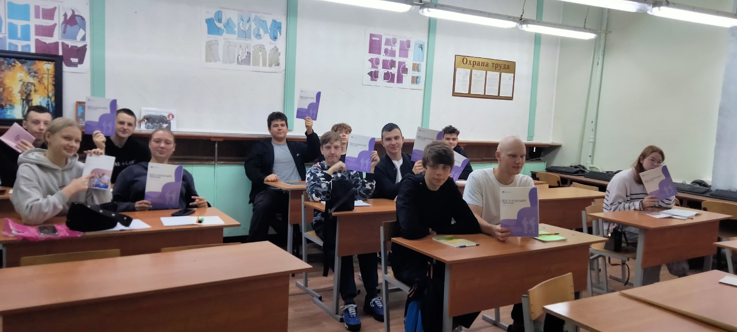 Юноши и девушки четырех учебных групп № 10 «Оператор оборудования швейного производства» (по видам)», № 11 «Мастер по изготовлению швейных изделий», №15«Мастер по ремонту и обслуживанию автомобилей» и №20-С – «Строительство и эксплуатация зданий и сооружений» знакомились с пенсионным законодательством. Они узнали о понятиях «страхователь», «страховщик», «застрахованное лицо».