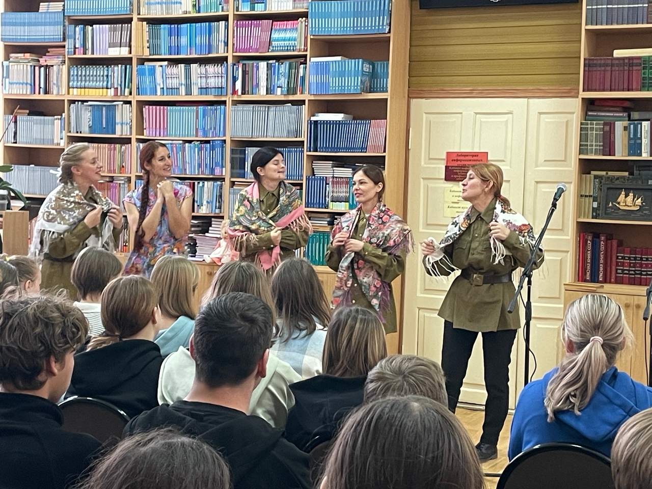 Некоторые предполагаемые моменты из жизни легендарных лётчиц библиотекари очень живо и эмоционально показали с помощью театральной постановки. Мероприятие прошло на одном дыхании. Ребят так же познакомили с историей создания журнала 2 эскадрильи «Фронтовые будни». Мероприятие было подготовлено по материалам рукописного «Литературного журнала» Первой эскадрильи и журнала «Фронтовые будни» Второй эскадрильи 46 гвардейского Таманского авиаполка, для которых в перерывах между боями писали свои стихи и рассказы сами девушки-лётчицы.