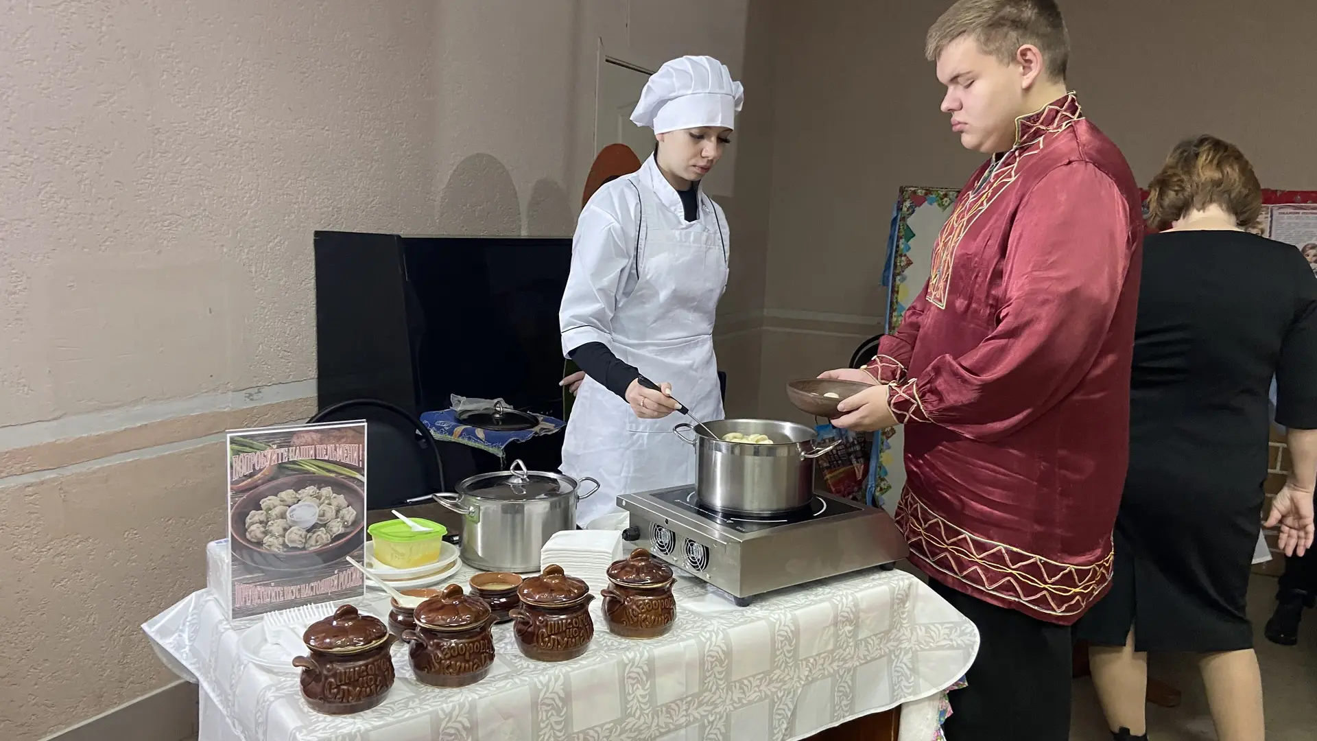 Обучающиеся на протяжении недели готовились к данному мероприятию, где представили русское блюдо «Пельмени».