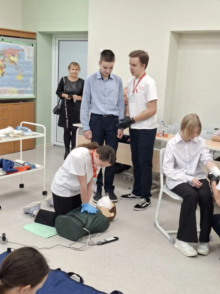 В завершении лекционных занятий для руководителей образовательных учреждений и администрации района был организован круглый стол на базе МБОУ СШ №3, на котором активные участники волонтёрского объединения «Планирование семьи и ЗОЖ» (рук.Николаева Н.А.), недавно вернувшиеся с Всероссийского чемпионата по оказанию первой помощи (г.Саранск), продемонстрировали мастер-класс по оказанию первой доврачебной помощи.