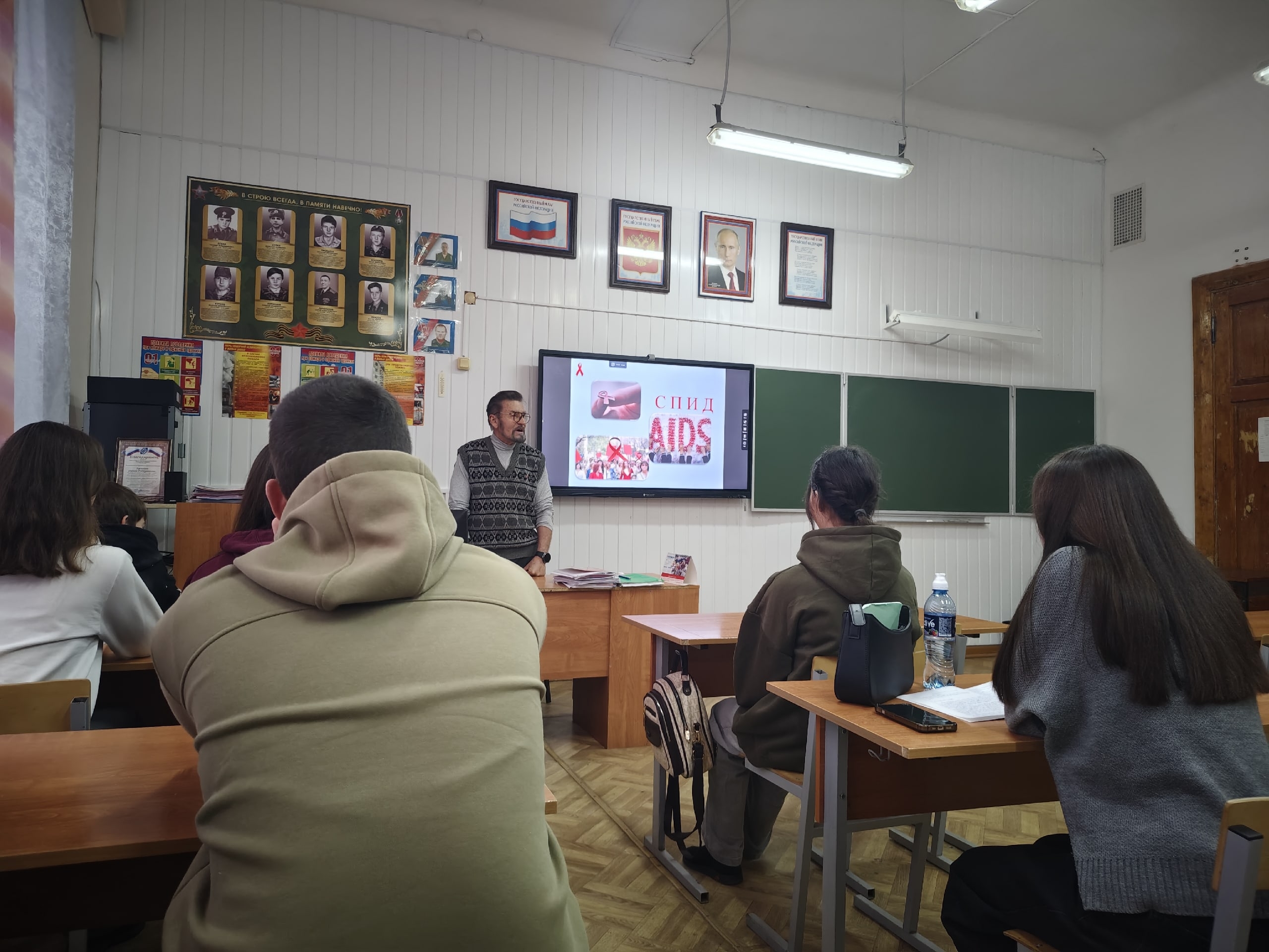 — Беседы прошли со специалистами Центра по профилактике и борьбе со СПИД и инфекционными заболеваниями Бердуновой Еленой Григорьевной, Щуренковой Ириной Аполлоновной, Щуренковым Александром Павловичем и интерактив с практическим психологом областного наркодиспансера Драгуновым Олегом Александровичем.