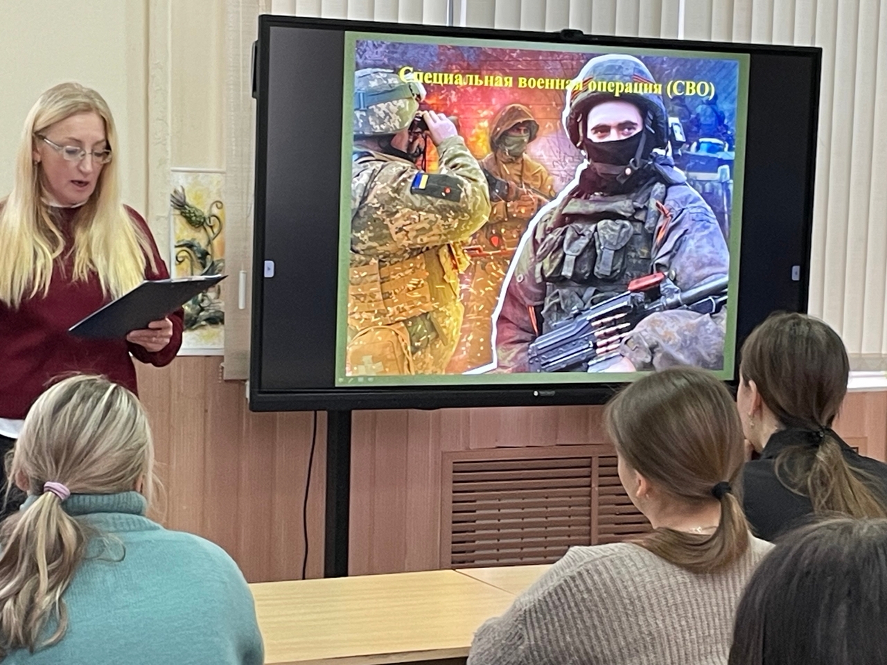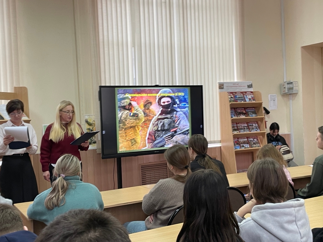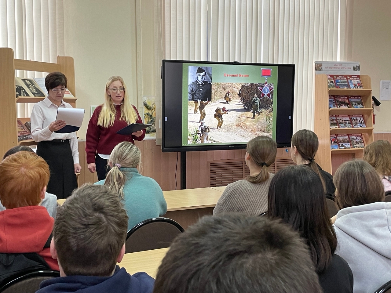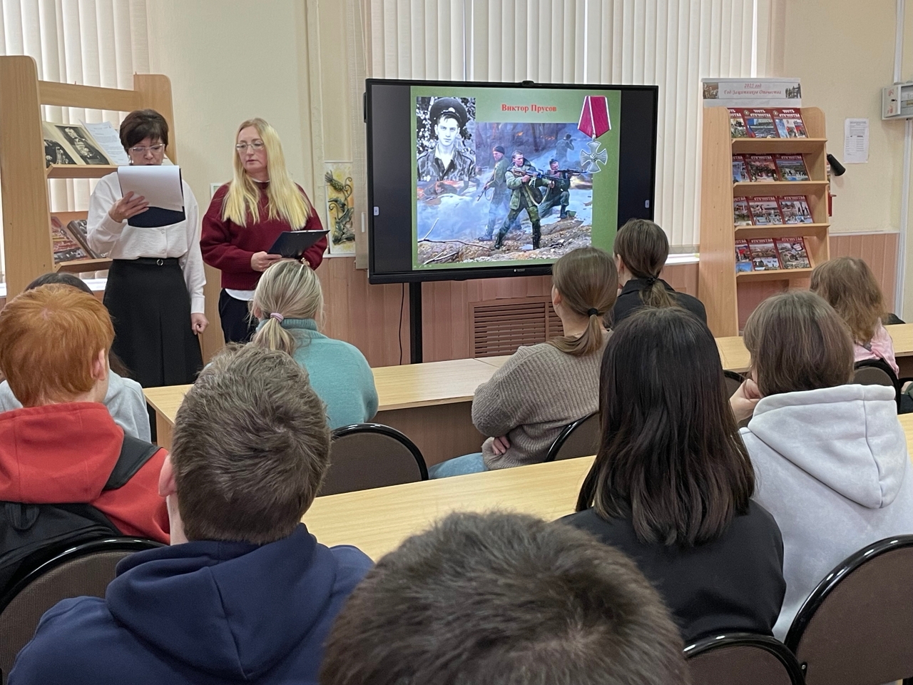В ходе мероприятия звучали песни, были показаны отрывки из документальных фильмов, Лобышева Татьяна Владимировна проникновенно читала стихи про наших героев.
