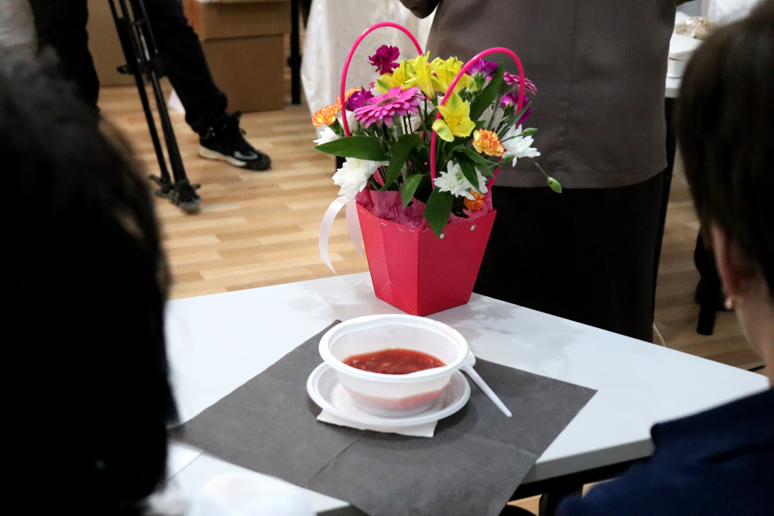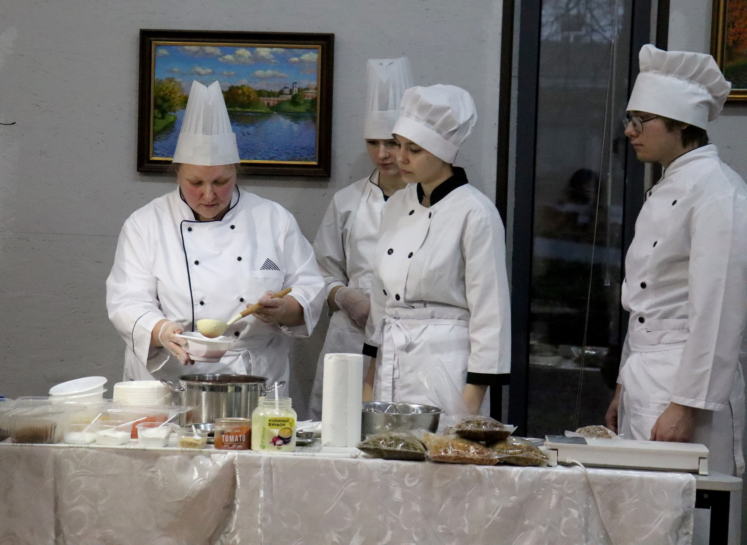 Н.С.Ветрова, мастер производственного обучения Родниковского политехнического колледжа, с волонтёрами Победы отряда «ПУльс» провела дегустацию сухого борща. Каждый мог попробовать и оценить суп, приготовленный с любовью.