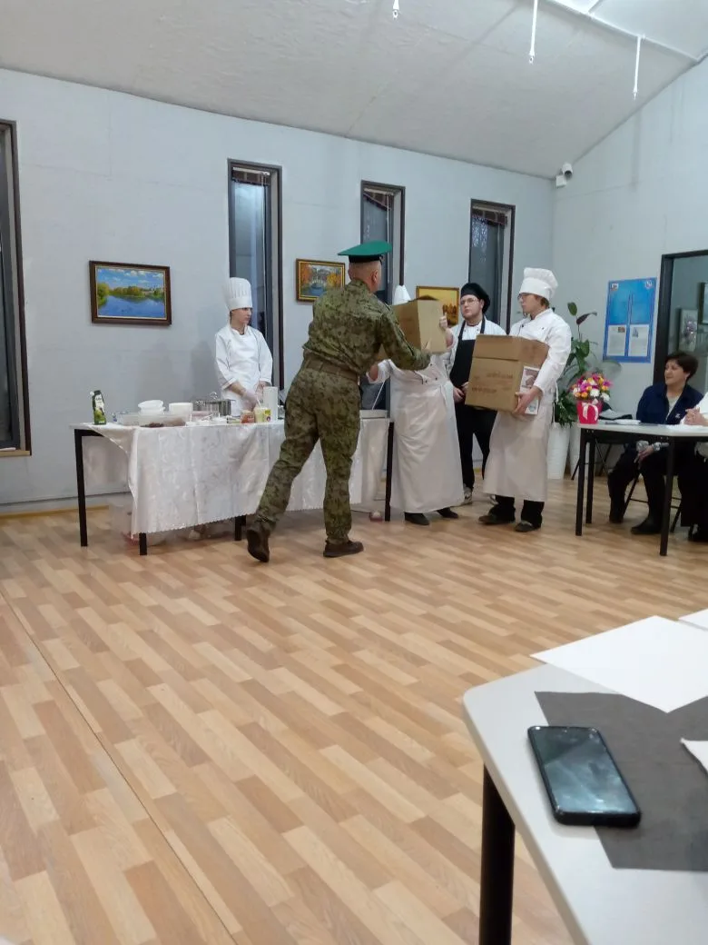 Также была передана представителям Союза десантников, Содружеству пограничников и казачьему сообществу гуманитарную помощь — 40 кг сухого супа и сухой душ.