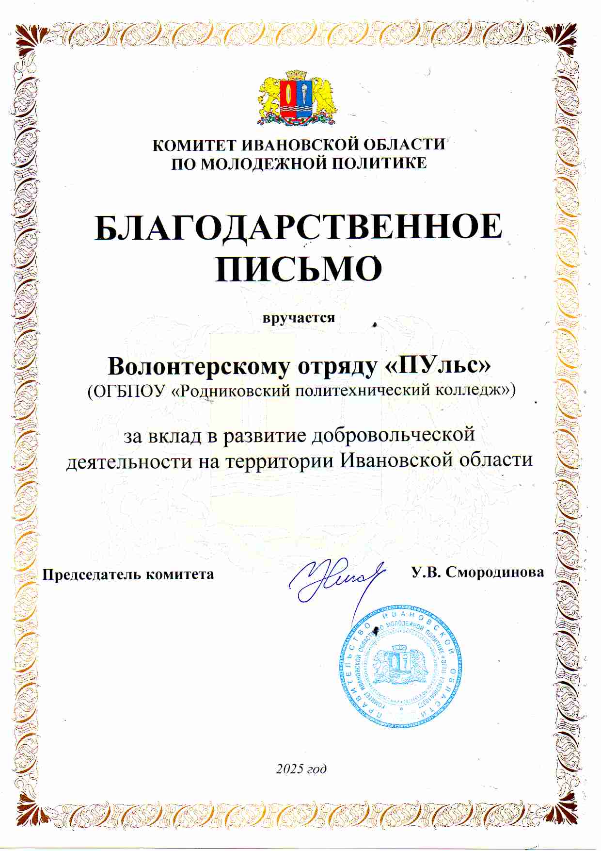 Благодарственное письмо