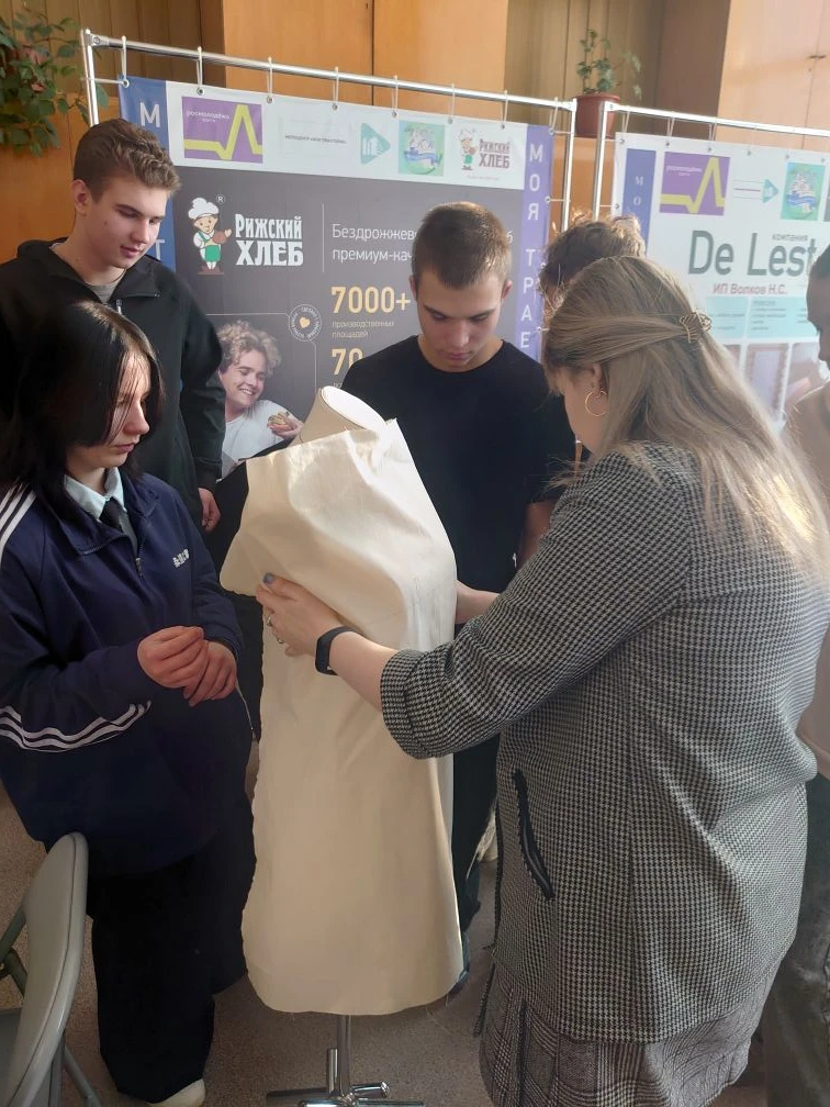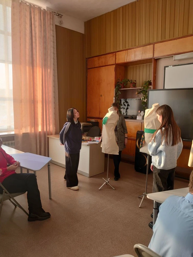 22 января Экспоцентр «Моя траектория» принял обучающихся 9-а класса МБОУ СШ № 4. После заочного знакомства с предприятиям Родниковского района ребята приняли участие в тестировании об их профессиональных предпочтениях. До девятиклассников была доведена информация о профессиях и специальностях, по которым Родниковский политехнический колледж проводит набор в 2026 году. А потом началось самое интересное! Разделившись на группы, школьники под руководством мастера производственного обучения Ю.С.Исабаевой попробовали свои силы в макетировании изделия одежды на манекене методом наколки. Каждая группа дала название своему изделию и подготовила короткую рекламу.