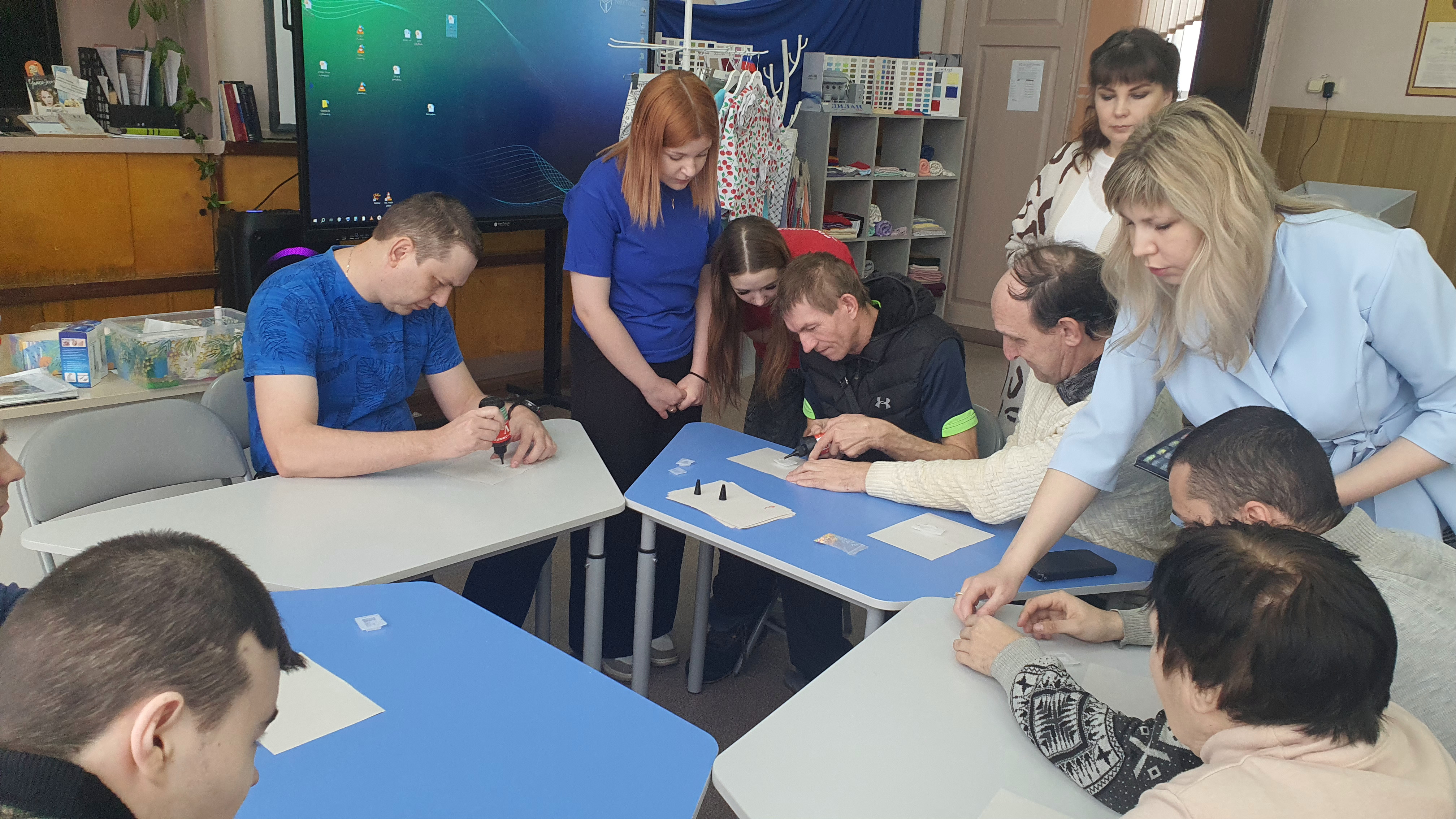 12 февраля 2026 года в Экспоцентре «Моя траектория» – опять гости. Получатели социальных услуг ОБУСО «РКЦСОН» знакомятся с нашим центром, волонтёры проводят заочную экскурсию по предприятиям района, амбассадоры ФП «Профессионалитет» организуют мастер-класс «Смолка-мастер» по изготовлению украшений из эпоксидной смолы.