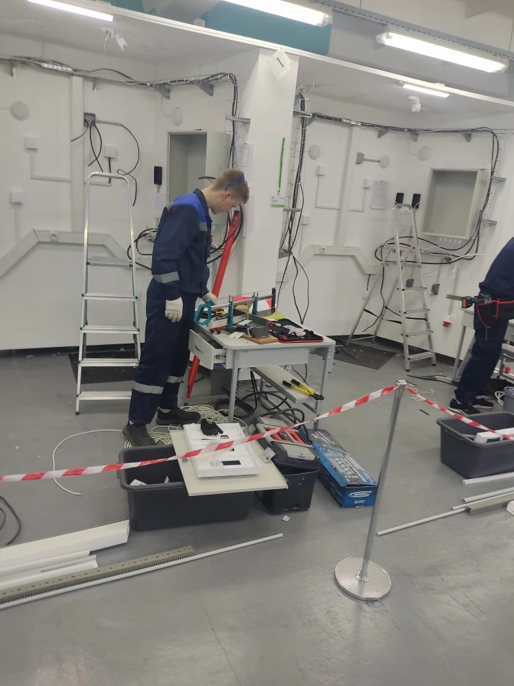 В программе конкурсных дней — монтаж кабеленесущих систем: участники прокладывают кабель-каналы и лотки. Однако самой интеллектуальной частью соревнований стал модуль «Поиск неисправностей», где конкурсантам предстоит обнаружить скрытые ошибки, заранее внесенные в схемы экспертами. Согласно условиям конкурсного задания, участники на 3 день продолжают монтаж кабеленесущих систем. Основной фронт работ включает прокладку проводов и кабелей, монтаж элементов управления и нагрузки, а также сборку и коммутацию низковольтных коммутационных устройств (НКУ). Параллельно с выполнением практических заданий, конкурсанты ведут заполнение отчетной документации, что является неотъемлемым требованием к современному специалисту.