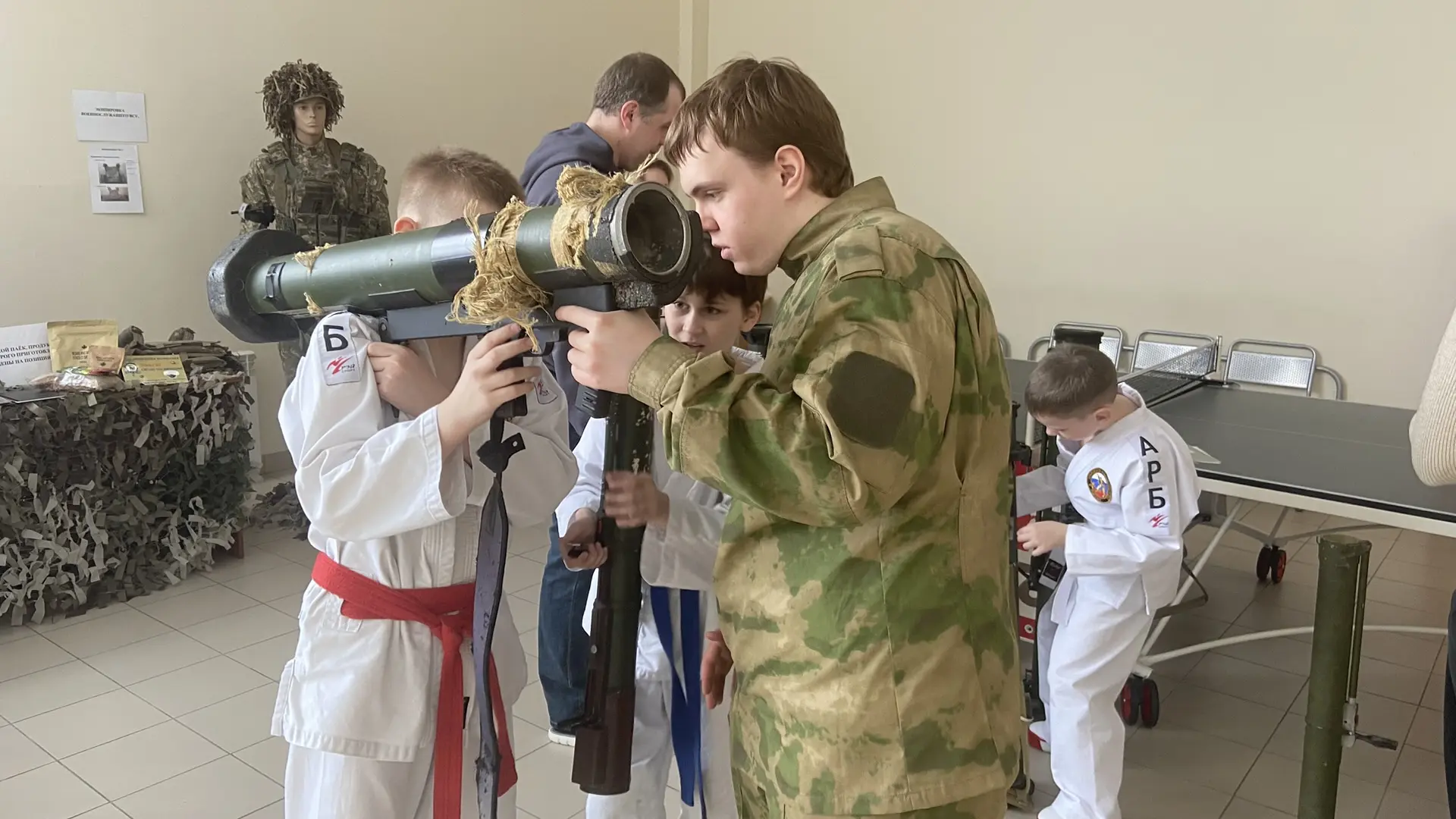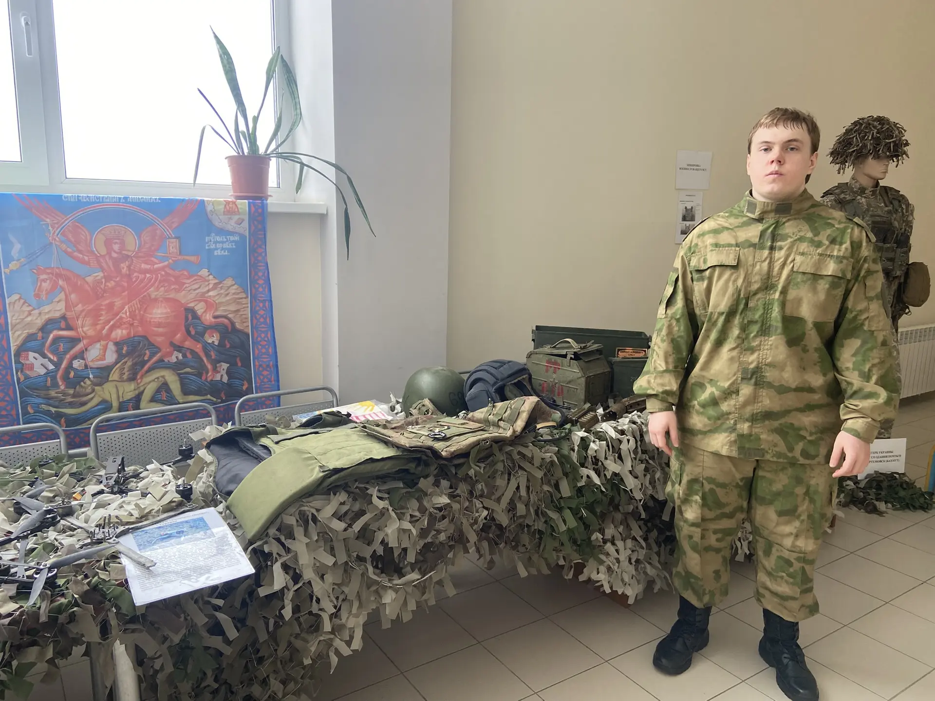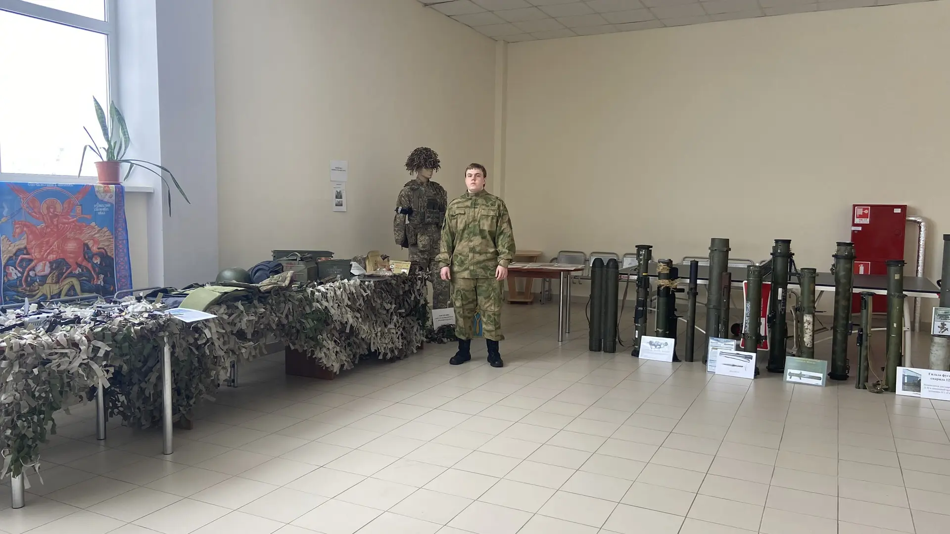 Казачье сообщество организовало экспозицию, включающую военные трофеи, добытые в зоне спецоперации, образцы современного вооружения и снаряжение противника. Экскурсию по трофеям провёл студент колледжа Ларин Дмитрий.