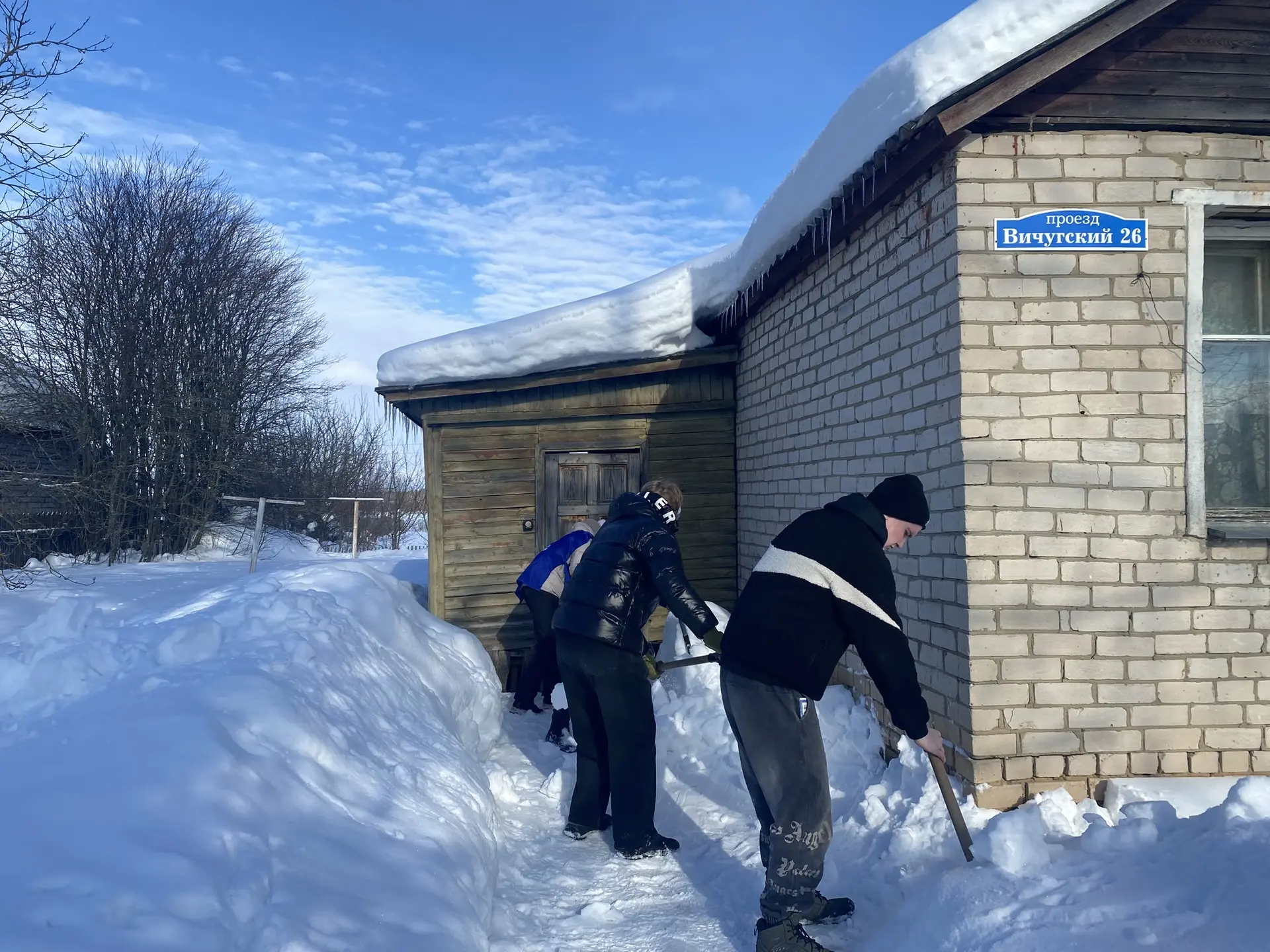 Вместе с Зайцевым А.Ю. наши Волонтёры Победы отряда «ПУльс» помогли очистить дворовую территорию семье участника СВО.