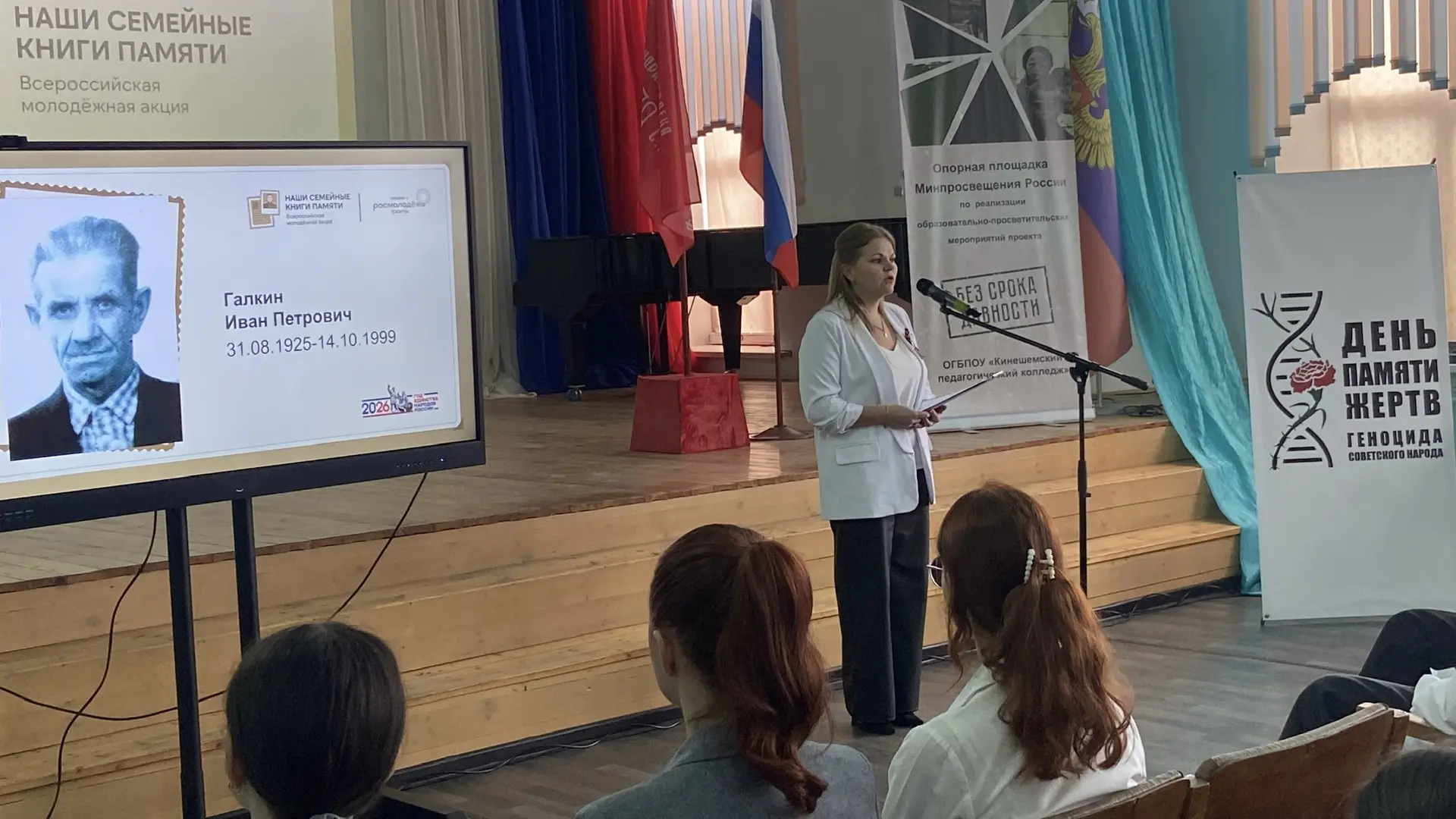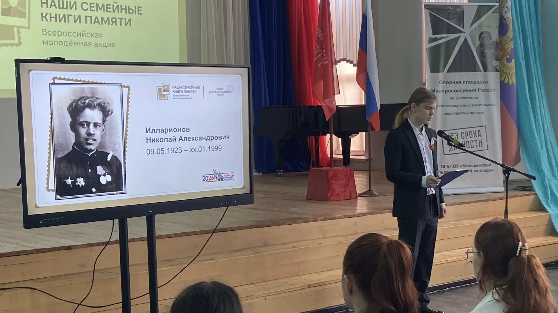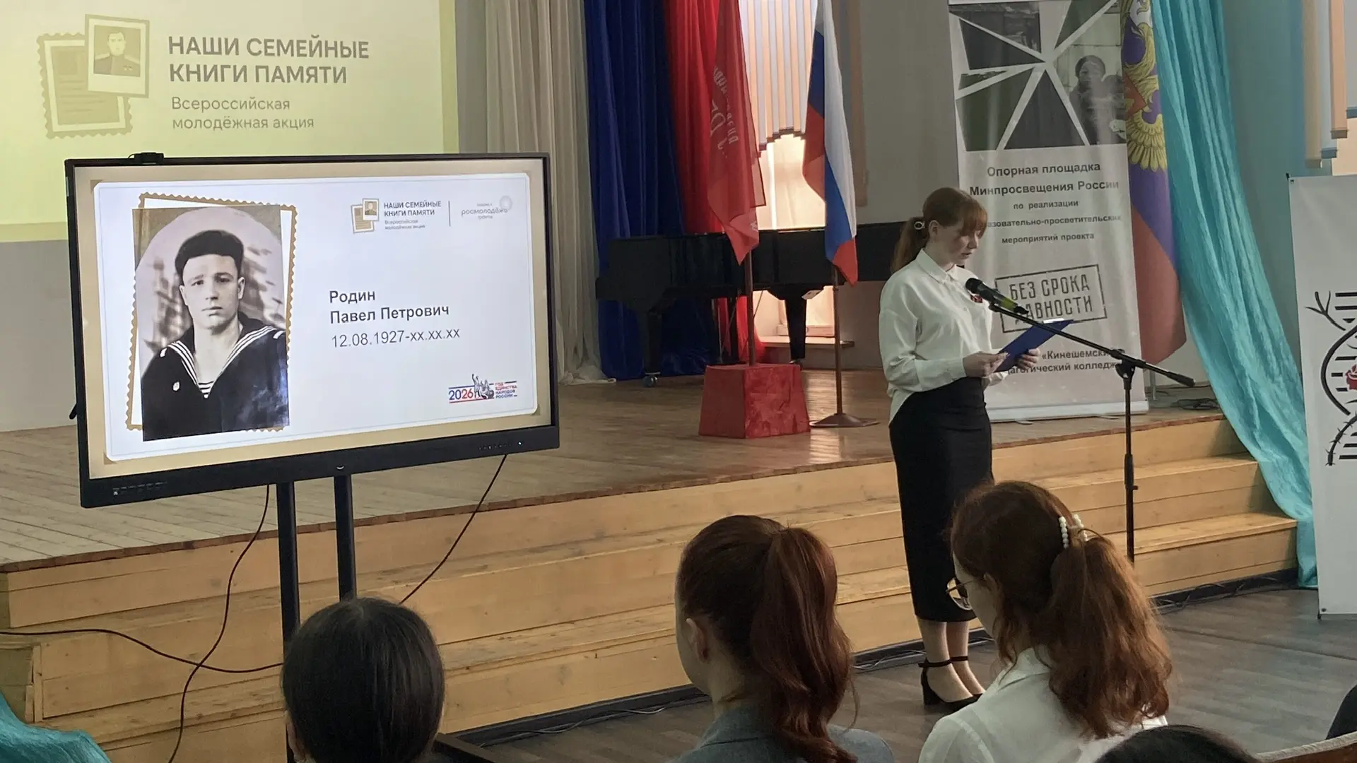 21 апреля 2026 года на базе Кинешемского педагогического колледжа состоялась Всероссийская молодёжная акция «Наши семейные книги памяти», в которой приняли участие и студенты Родниковского политехнического колледжа Смирнов Михаил, Родина Арина и Можайцев Кирилл вместе с советником директора по воспитанию Жаворонковой Мариной Петровной.