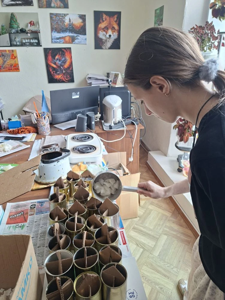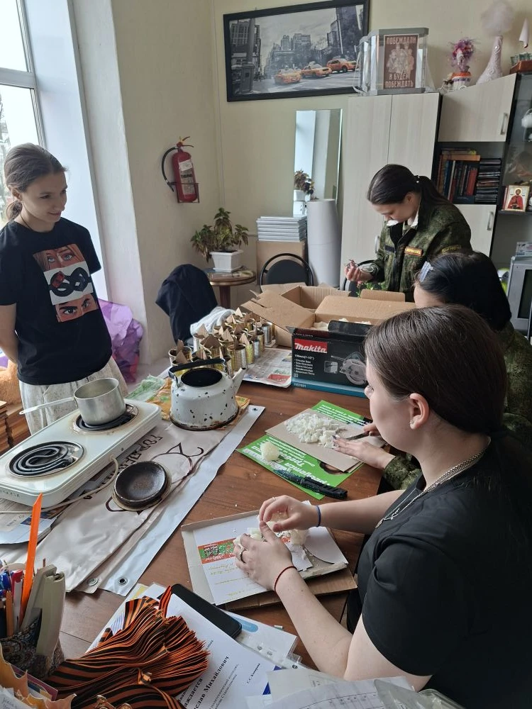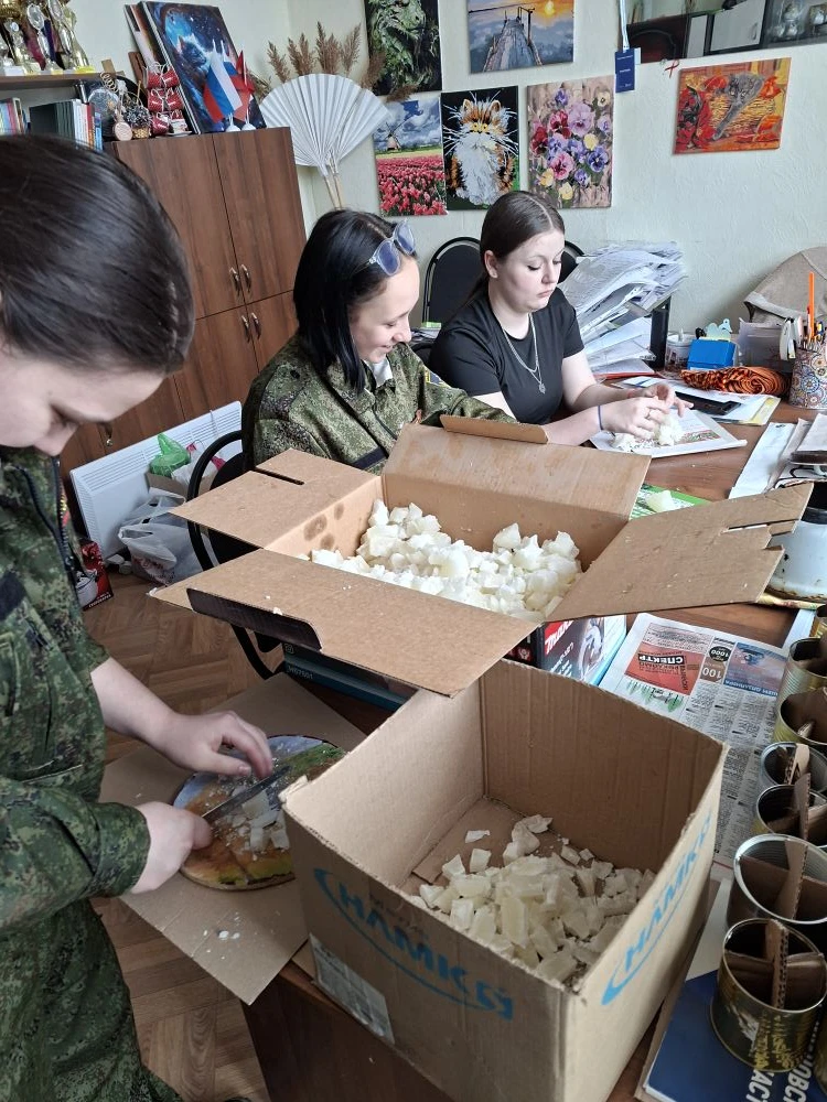 Волонтёры Победы отряда «ПУльс» продолжают помогать нашим ребятам в зоне СВО. Топят воск и заливают блиндажные свечи.