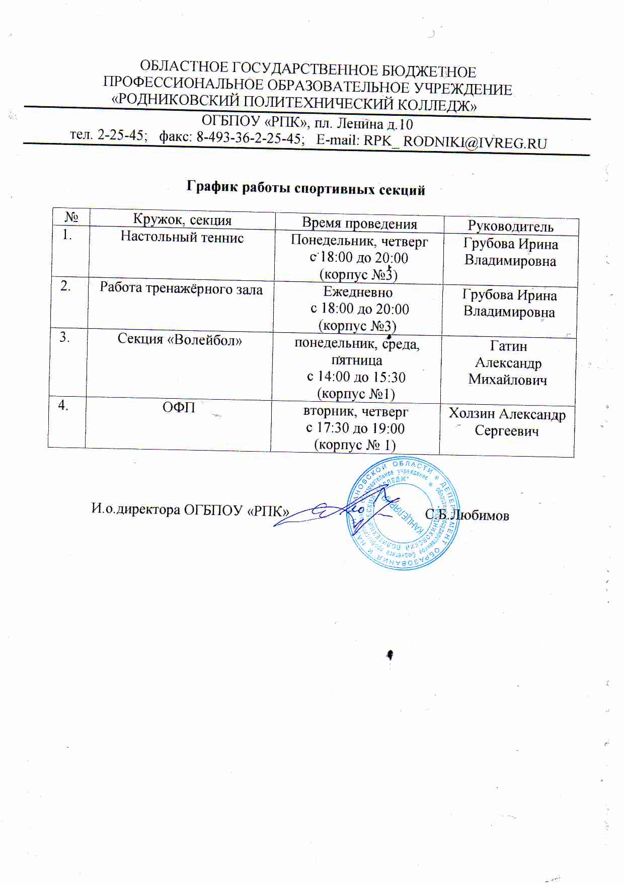Студенческий спортивный клуб (ССК) Положение Приказ План работы ССК Выписка из реестра лицензий № Л035-01225-37_00229121 (2022-10-04)